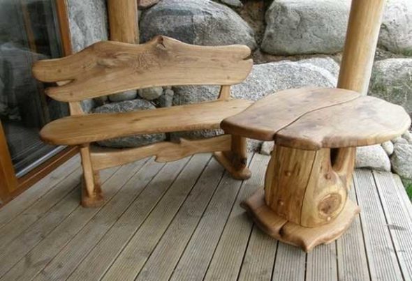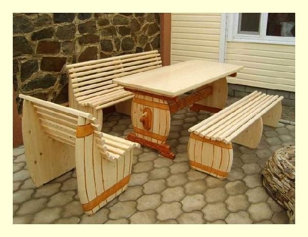 Mobili da giardino in salice fatti a mano Supporto da pavimento in vimini e vaso in vimini per creare intimità e comfort - Fatto di legno. Il materiale più diffuso è il legno. Con elementi in legno è possibile realizzare tutto ciò di cui si ha bisogno per arredare una casa di campagna. Dopotutto, gli elementi in legno si distinguono per la loro leggerezza, economicità ed elevato grado di ecocompatibilità. L'approccio alla realizzazione di mobili in legno dovrebbe dipendere dal tipo di legno utilizzato. A questo proposito potrebbero essere necessari diversi strumenti. È meglio utilizzare pannelli e compensato trattati. Ma è possibile utilizzare anche vari oggetti in legno non necessari che, se decorati correttamente, possono rappresentare un'eccellente aggiunta alla composizione complessiva dell'interno. È meglio evitare di realizzare oggetti con alberi di conifere, poiché contengono molta resina. Gli elementi creati utilizzando i log costituiranno una bella aggiunta al sito. Sempre più spesso nei cottage estivi si trovano mobili ricavati da ceppi di varie dimensioni.